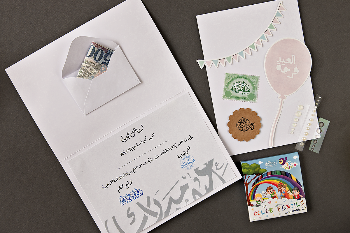 و بإمكانك إضافة فعالية لتصميم كرت معايدة من قبل الأطفال بأشكل جميله